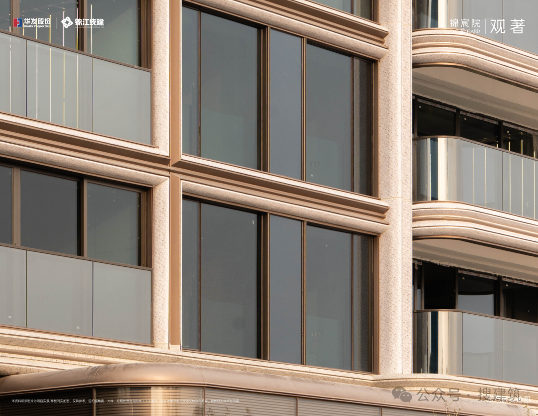 比如成都华发统建·锦宸院基座主要由各类石材组成,比如库班绿石材,延续了“弧形倒角”的设计语言,整个锦宸院的建筑立面实现了“0漆感”,据说其洋房的立面成本高达1500元/平。