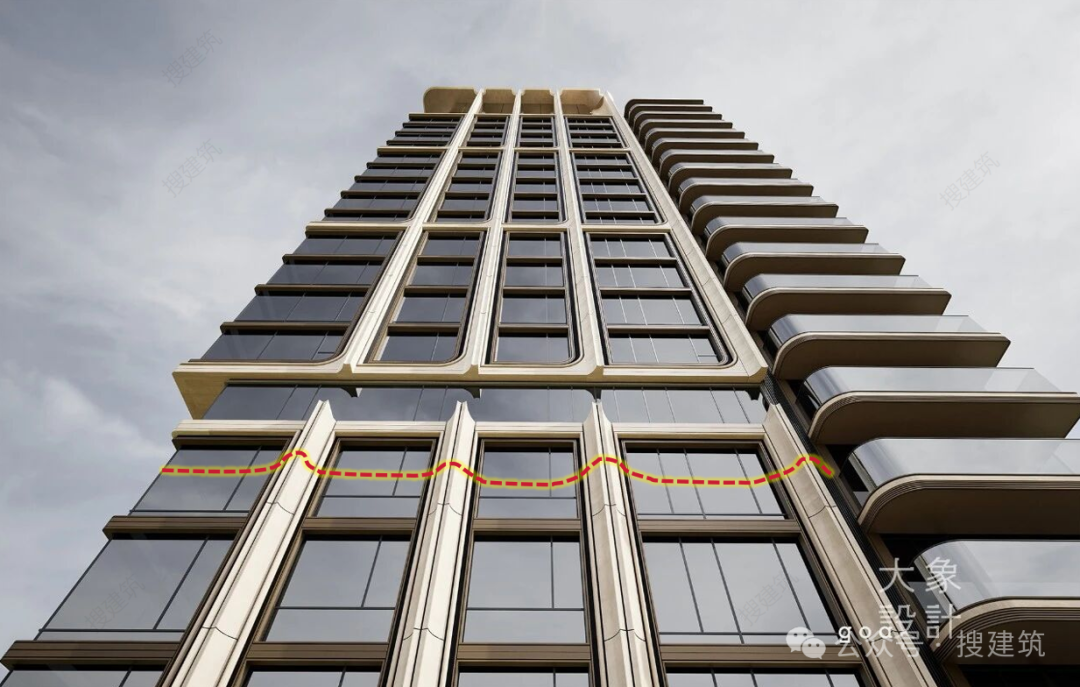 立面呈起伏状态,形成韵律和节奏。起伏手法让建筑立面如乐谱般律动,通过波浪形、锯齿形等有规律的形态变化,创造出独特的视觉节奏与音乐感。