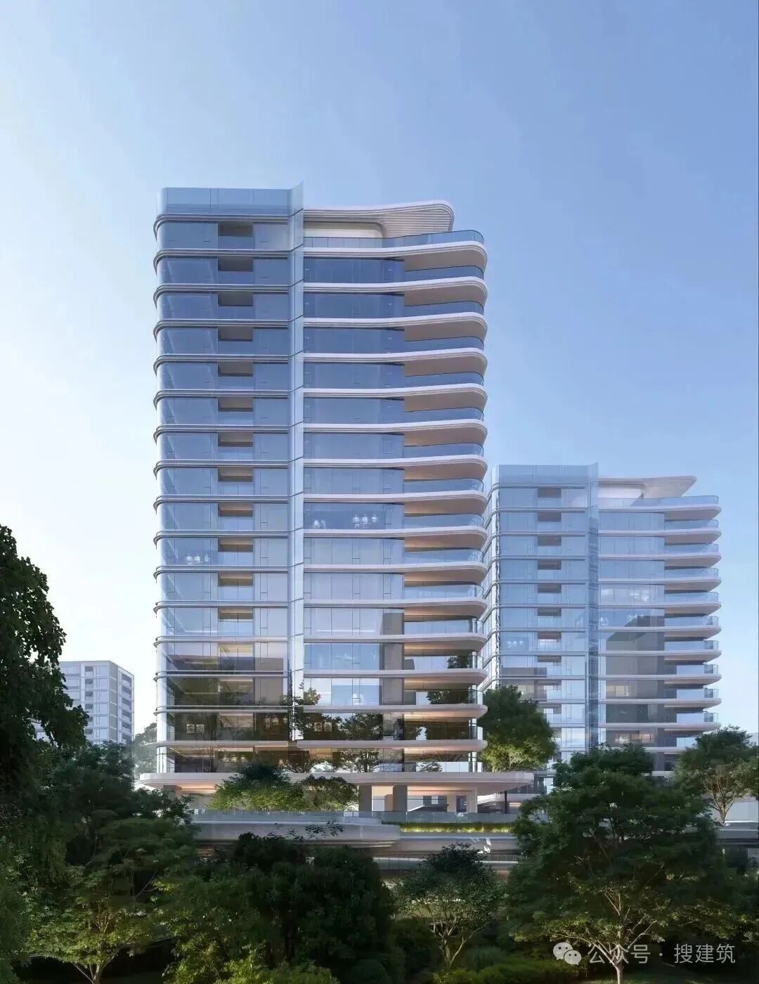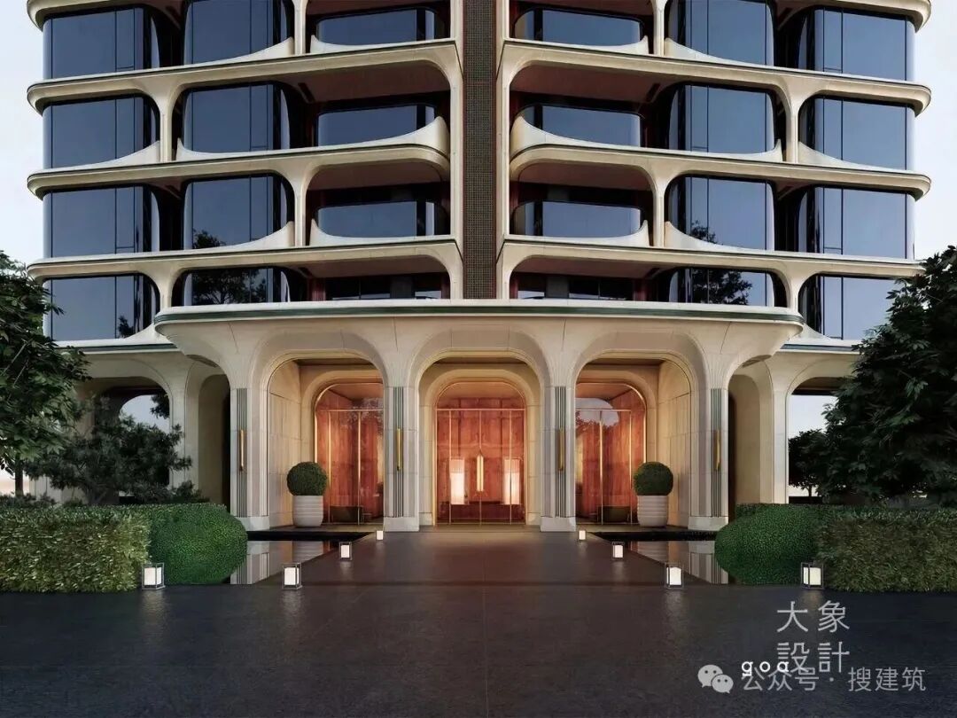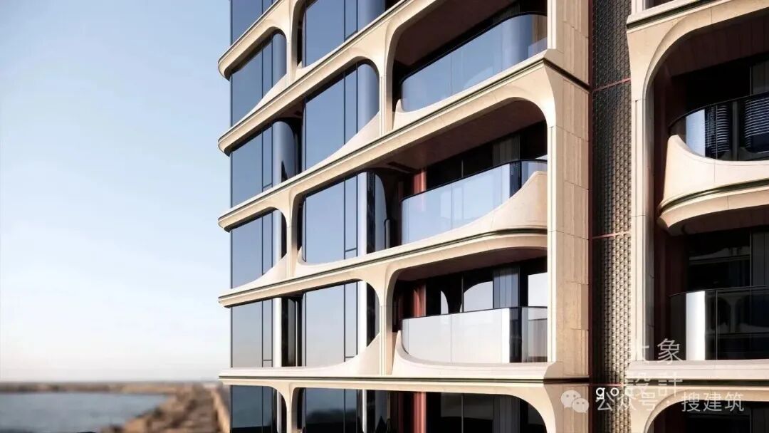 再比如,GOA大象另一个项目,上海嘉佰道·上海,以雕塑感十足的建筑立面作为核心美学名片,突破传统住宅平直界面与常规曲面建筑的单一形态。