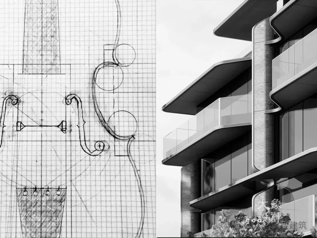 比如,由GOA大象设计担纲的上海嘉佰道·徐汇,设计跳出常规住宅的方盒子形态,以徐汇作为中国现代音乐发源地的文化基因为灵感,将“乐器王后”大提琴的优雅弧线,转译成建筑立面的二维曲线语言。