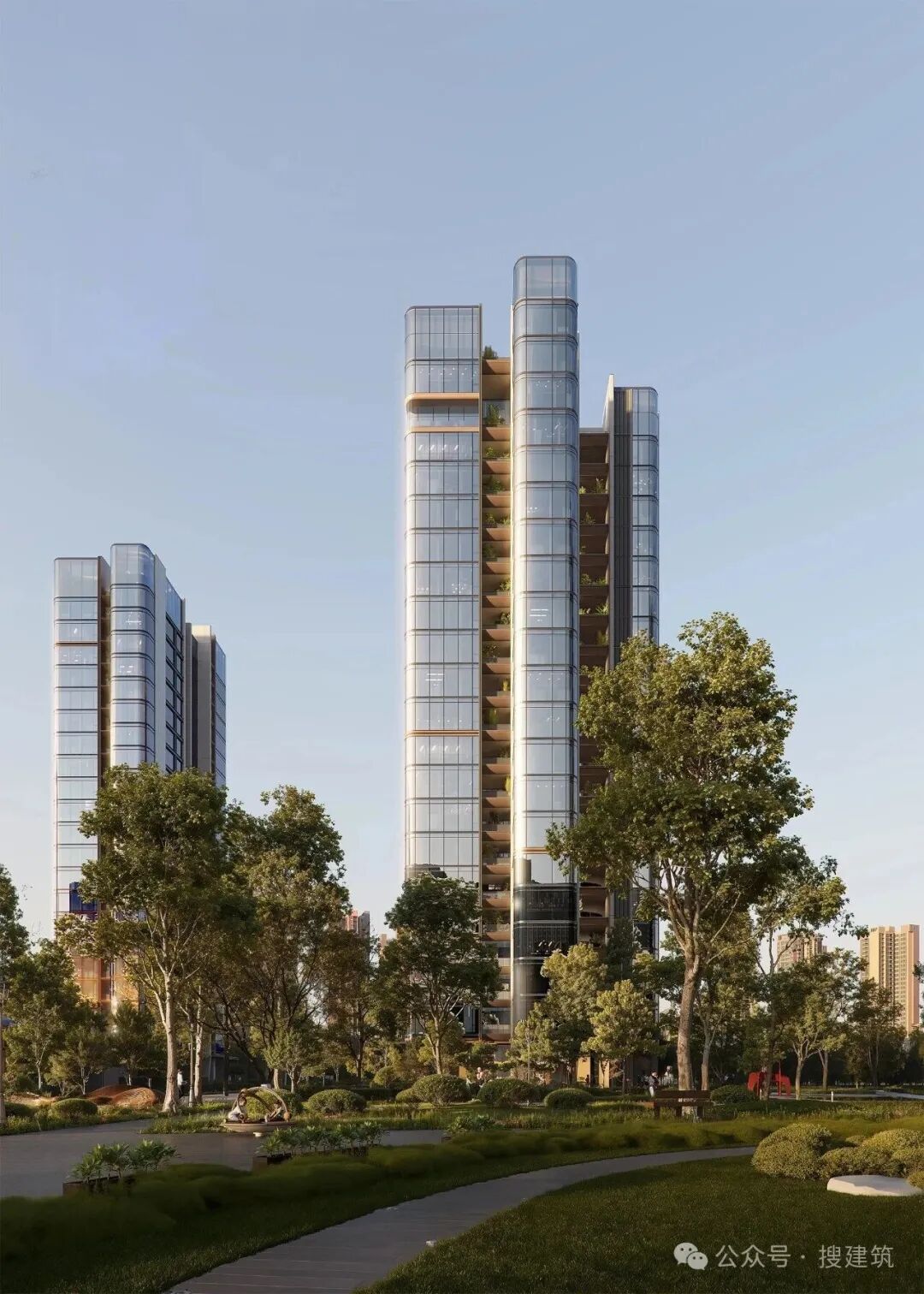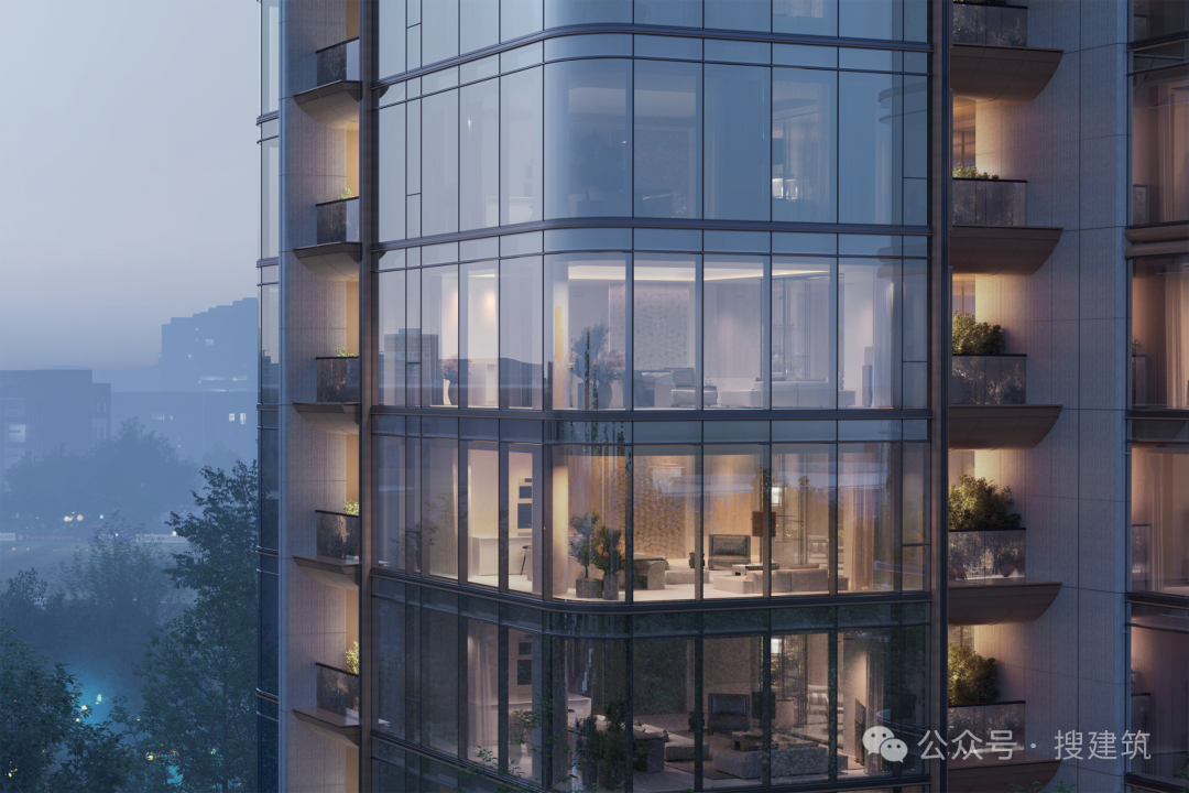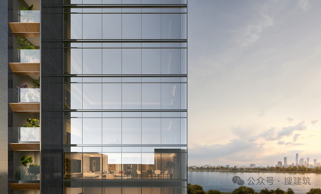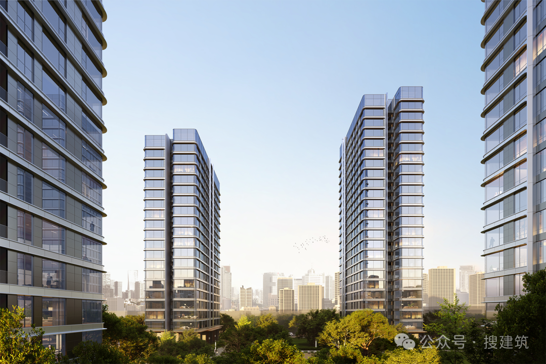 立面材质上,项目采用“大体量连续玻璃幕墙+陶板+铝板”的组合,彻底摒弃涂料,既保证了建筑的质感与耐久性,又实现了视觉上的简洁精致,与周边住区形成强烈差异,打造出具有高识别性的高品质住区。
