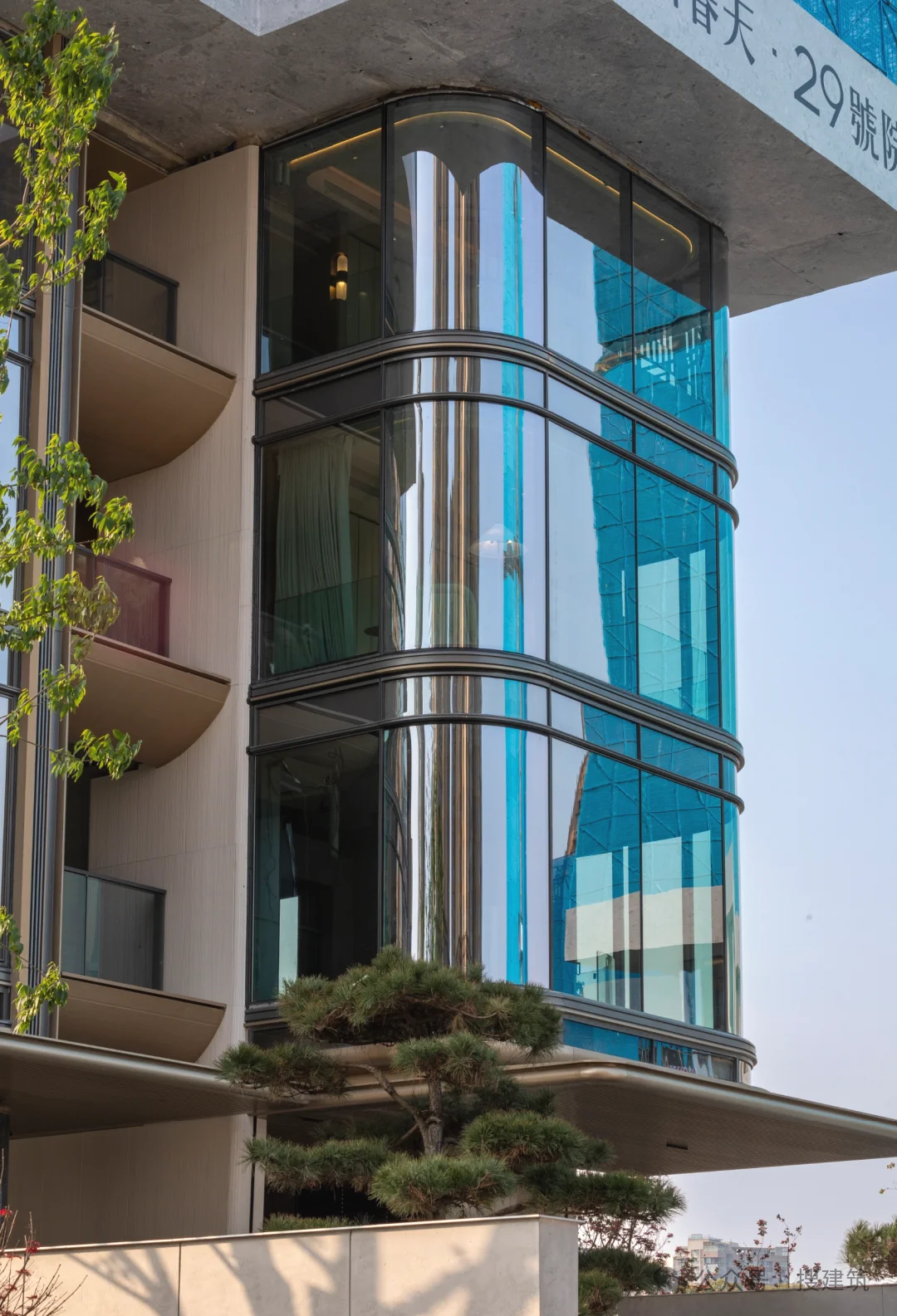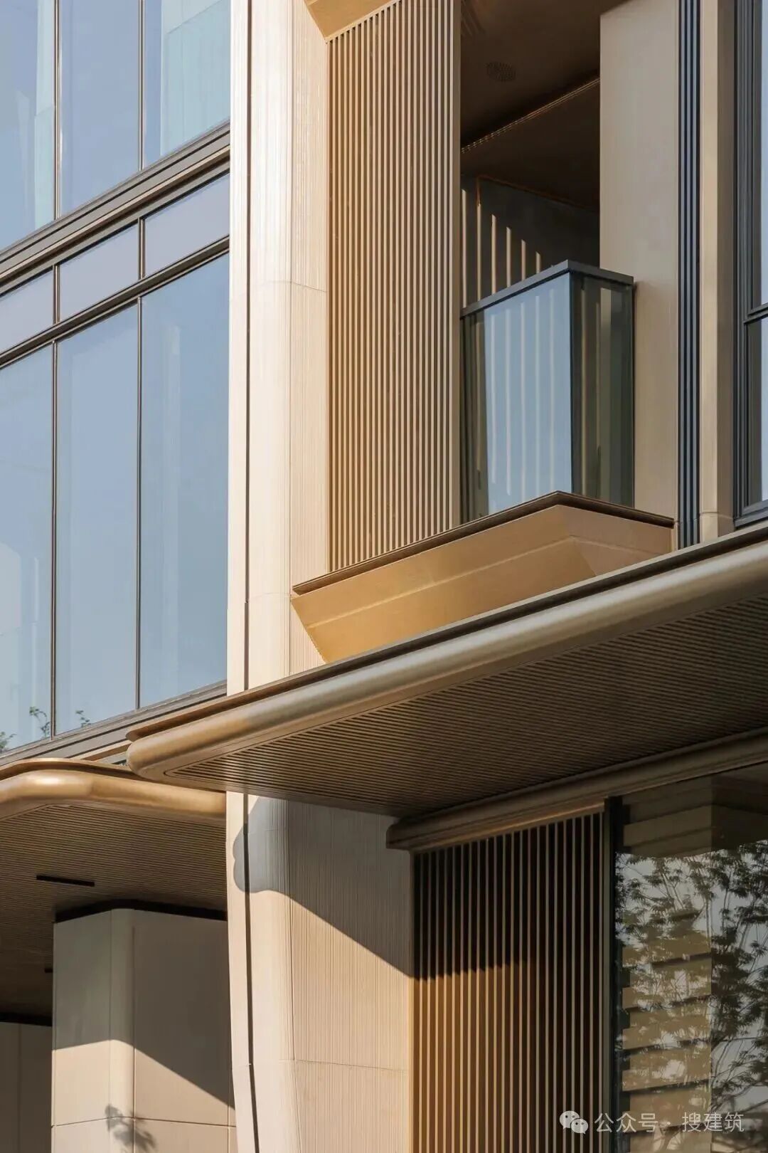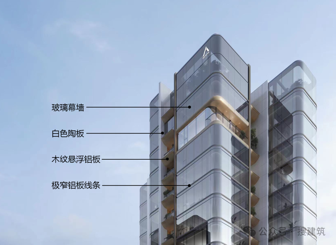 弧形线条和浅色调营造现代典雅风格,一体化铝板与玻璃幕墙结合,提升耐久性与视觉高级感。